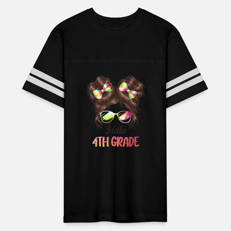 First Day Hello 4th Grade Messy Hair Bun Girl Back